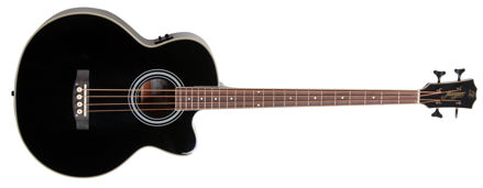 Ibanez AEGB24E-BKH akustisk bass med AEQ-2T preamp, sapele kropp, nyatoh/maple hals, valnøtt gripebrett og bridge, Black High Gloss finish