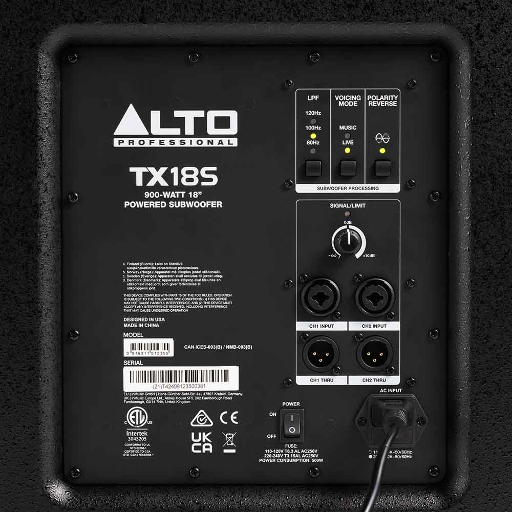 Takket være en 18-tommers basshøyttaler kan TX18S håndtere nyanserte, dype bassfrekvenser som ofte går tapt når man bruker vanlige høyttalere, ettersom de ikke er designet for å spille i fullt frekvensområde. Den innebygde 900 watts forsterkeren er utstyrt med overbelastningsvern som sikrer at bassgjengivelsen er ren og klar selv under tung belastning.