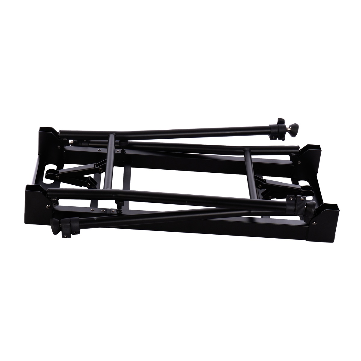 Pro-level heavy-duty Table Keyboard Stand er et solid og profesjonelt stativ utviklet for keyboards og digitalpianoer i full størrelse. Med Quick-Lock system for rask høydejustering, levelling feet for perfekt balanse selv på ujevne underlag, og en forsterket stålramme med høy vektkapasitet, er dette stativet bygget for krevende bruk både på scenen og i studio.