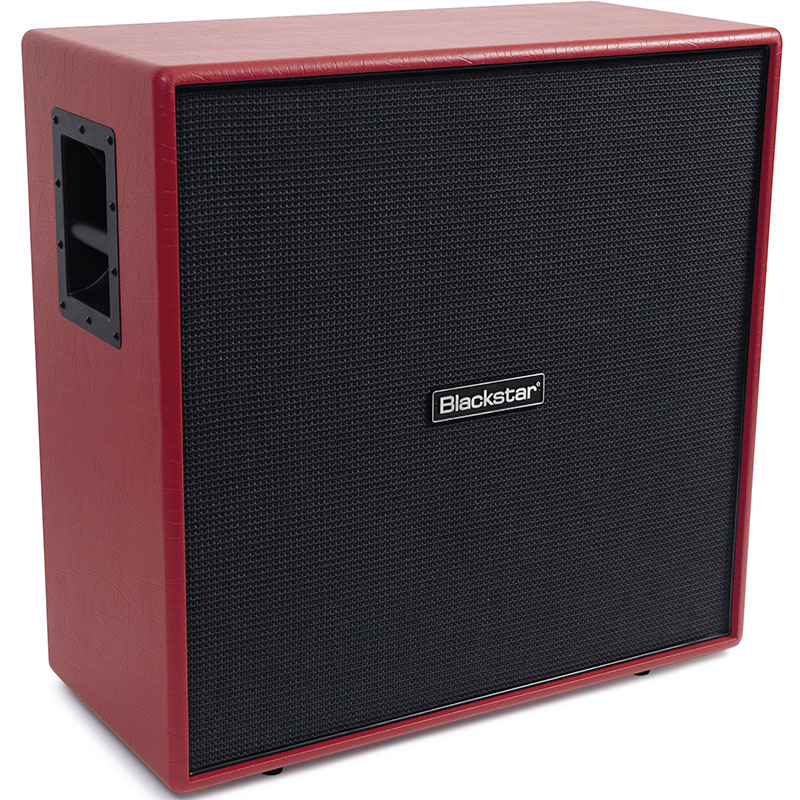 Rett høyttalerkabinett i unik rubinrød finish med 4x 12" Celestion Vintage 30s-elementer designet sammen med Doug Aldrich.
