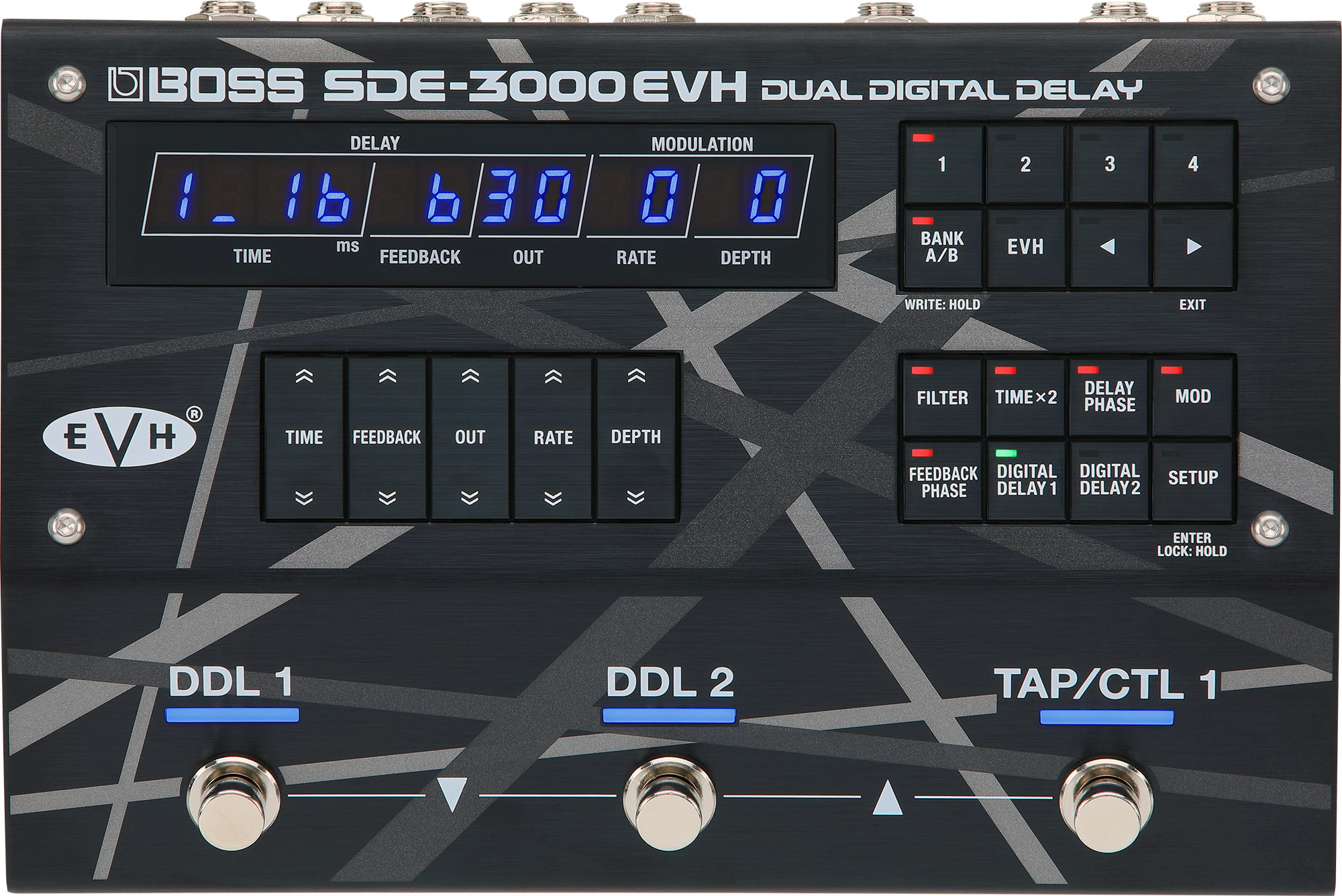EVH og BOSS har slått seg sammen for å lage SDE-3000EVH Dual-Digital Delay, en autentisk gjenskapelse av de stereo delayene som utgjorde kjernen i Eddie Van Halens massive gitarsound på scenen med tre kabinetter.Basert på den vintage Roland SDE-3000 rackmonterte delayen, gir denne kraftige prosessoren to fullt utstyrte SDE-3000s i ett pedalformat, sammen med omfattende tilkoblingsmuligheter for å bygge opp et wet/dry/wet oppsett akkurat som Eddie brukte. Du får også åtte forhåndsinnstillinger kuratert av EVH med nøyaktige innstillinger fra hans faktiske delay-enheter, slik at du kan oppleve mesterens unike delay-tone i ditt eget oppsett.