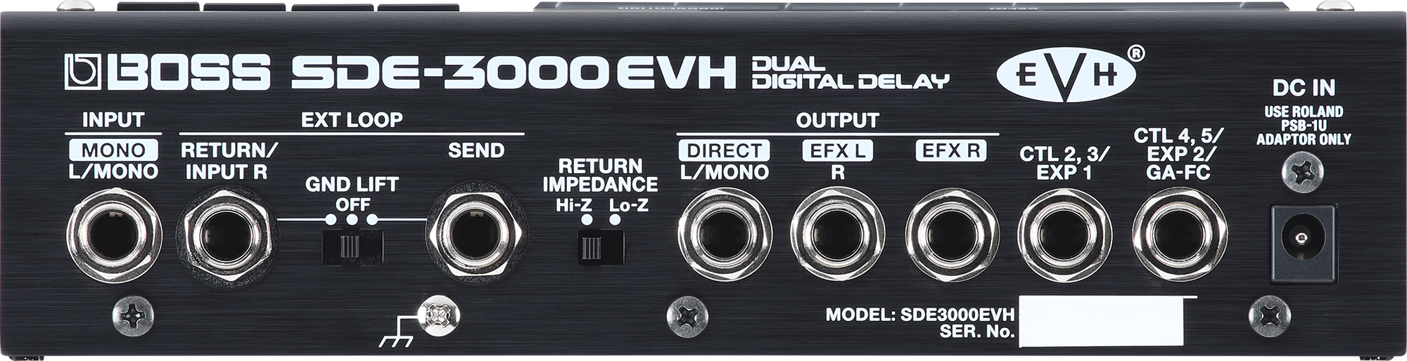 ● Spesialutgave av dual delay-pedal utviklet i samarbeid mellom EVH og BOSS● Basert på den legendariske Roland SDE-3000 rackmonterte digitale delayen fra 1980-tallet● Åtte EVH-forhåndsinnstillinger med nøyaktige innstillinger fra de to SDE-3000 delayene i Eddie Van Halens live-rigg (EVH-forhåndsinnstillingene er låst internt, men tillater justering av utgangsnivået)● Allsidig tilkobling for å skape et EVH wet/dry/wet oppsett og integrere med ulike mono- og stereooppsett● Klassisk utseende med den karakteristiske EVH-logoen og stripene● Varm vintage digital delay-lyd med utvidede funksjoner for moderne rigg● Distinkt retrodisplay og panelkontroller basert på originalen SDE-3000● Inkluderer to fullverdige delay-effekter, hver med uavhengige parametere, mono/stereo-modulasjon og panorering● Bredt justerbar delaytid med to innstillinger: 0–1500 ms og 0–3000 ms● Karakteristisk modulasjon inspirert av den originale kretsløpsdesignen● Fasebrytere for primært delay og delay feedback-loop● Justerbare low cut- og gigh pass-filtre for forming av delay og feedback-lyder● Send/return-funksjonalitet for å koble til en effektpedal eller bruke fire-kabelmetoden● Velgbar impedans på effektreturen for optimalisering av lyden med ulike forsterkere● Velgbar serie- eller parallell drift for de to delay-effektene● Lagre og hente lyder med 100 brukerminner● Justerbar støysperre● Tilordningsbar fotbryterkontroll for tap tempo, hold og mer● Jack-innganger for utvidet drift med opptil fire fotbrytere, to expression-pedaler eller fotkontrolleren GA-FC/GA-FC EX● MIDI I/O med plassbesparende mini TRS-jack-tilkoblinger● Inkluderer tre jordløftkabler for å eliminere støy i oppsett med flere forsterkere.