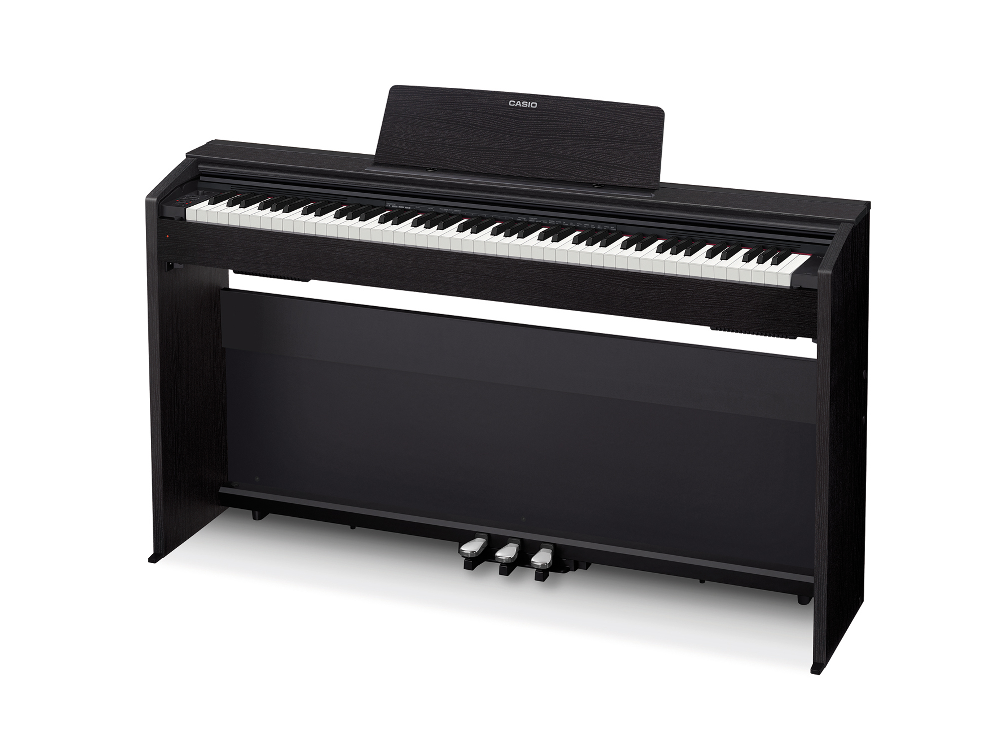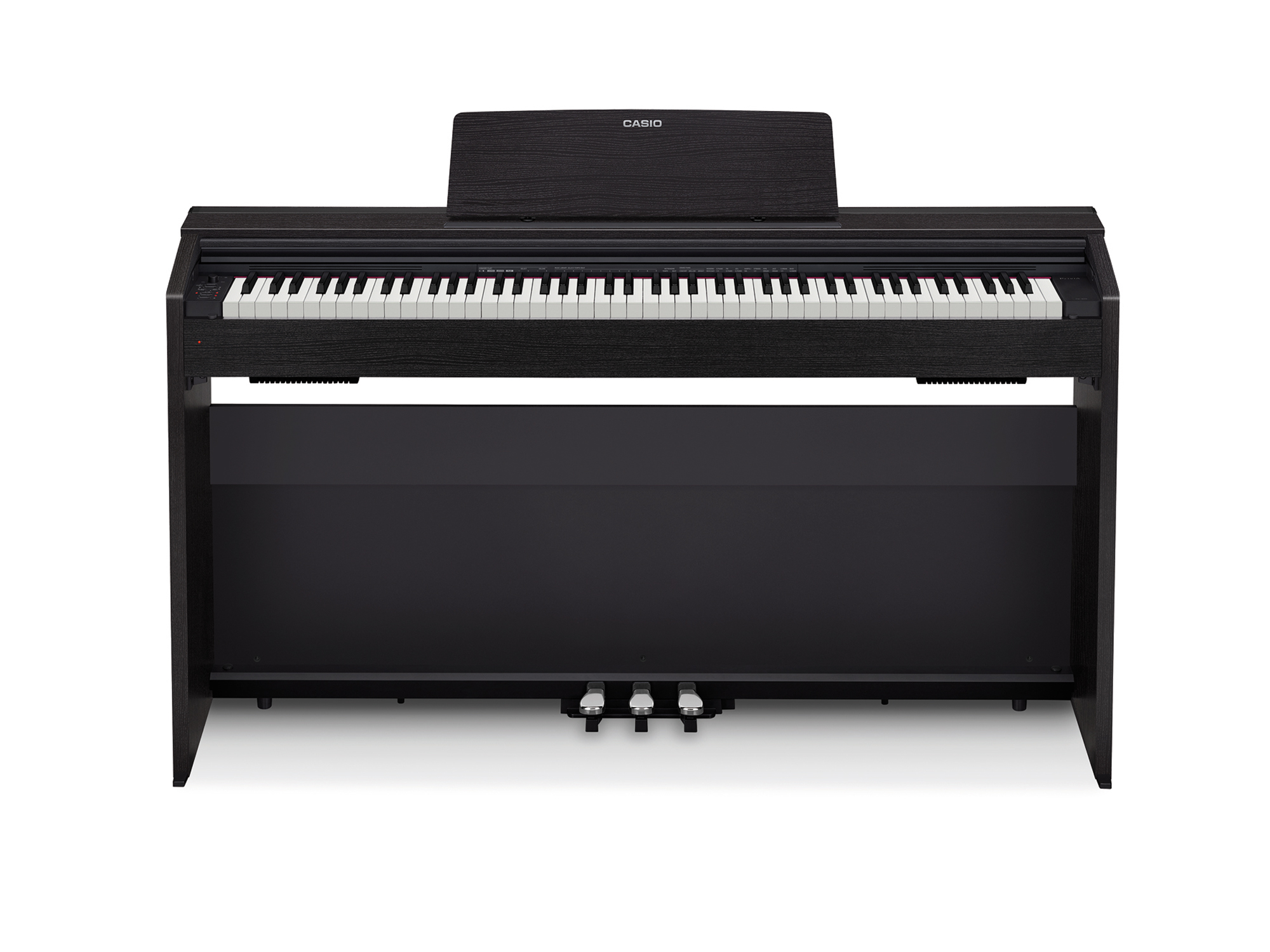 Privia PX-870 er flaggskipet i Privia-serien Designet for å gi deg en ekte grand piano opplevelse. Med en autentiskt pianolyd och følelse, en moderne design og det kraftfulle nye høytalersystemet er PX-870 et brilliant instrument som inspirerer til fantastiske opptredener. Multidimenstionell Morphing - AiR Sound Source Karakteren fra Casios nyutviklede multidimensjonelle Morphing AiR* Sound Source gjenspeiler i detalj en meget rik och autentiskt resonerende pianolyd. Softwaret og minnet i PX-870 er oppdatert og kan spille av mere avanserte samplinger enn noensinne. AiR = Acoustic and Intelligent Resonator Tangentene - Spillefølelsen Den hyllede Tri-Sensor II Scaled Hammer Action teknikken gir den perfekte følelsen. Den simulerte ibenholts- och elfenbensteksturen på tangentene i kombinasjon med Casios innovative hammerteknikk gir deg en autentisk spillefølelse. Juster selv anslagsfølsomhet och delay fra det att tangenten slåes an til at tonen produseres. Lydkilde AiR Sound Source, String Resonance, Damper Resonance, Damper Noise, Hammer Response, Lid Simulator, Key Off Simulator, Key Action Noise Praktiska funktioner PX-870's praktiske funksjoner er anvendbare både i studioet, øvingslokalet, kirken, aulaen,, konserthallen og for hjemmebruk. Koble til to hodetelefoner samtidig med 1/4" plugg på frontpanelet. Praktiskt for stille øving og stille undervisning. Duet mode splitter pianoet i to like pitch ranges hvilket gjør at både elev och lærer kan spille på samme instrument. Concert Play Concert Play lar deg spille til ti velkjente orkesterstykker. Lytt til pianodelen eller mute pianoinspillingen så at du selv kan spille til orkesterstykket. Det blir lett å øve ettersom PX-870 også kan senke tempoet på øvings- och orkesterstykket uten at det påvirker tonearten. Enkelt å koble til din enhet Koble PX-870 til din computer, iOS, Android uten å behøve installere drivere eller andre programmer igenom class-compilant USB. Egenskaper • Lydinnspilling(44.1 kHz WAV Format / opp til cirka 25 min per sang) • 19 høykvalitative lyder inklusive stereo grand piano • Digitale effekter: Hall Simulator (4 types), Chorus (4 types), Brilliance, DSP (preset for some tones) • Pianoundervisning med opp till 70 sånger • GRAND PIANO knapp, ELEC PIANO 1 knapp • MIDI Recorder • USB flash drive port • Hodetelefoner/OUTPUT: 2 (Stereo standard) • AUTO POWER OFF