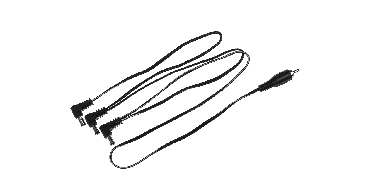 CIOKS 3-way Daisy Chain Flex type 1 er utviklet for pedalbrett der flere pedaler kan drives fra én enkelt utgang på strømforsyningen. Kabelen gjør det mulig å forsyne tre pedaler samtidig, forutsatt at alle bruker samme spenning og standard 5,5/2,1 mm center negative DC-plugg, også kjent som BOSS-standarden.