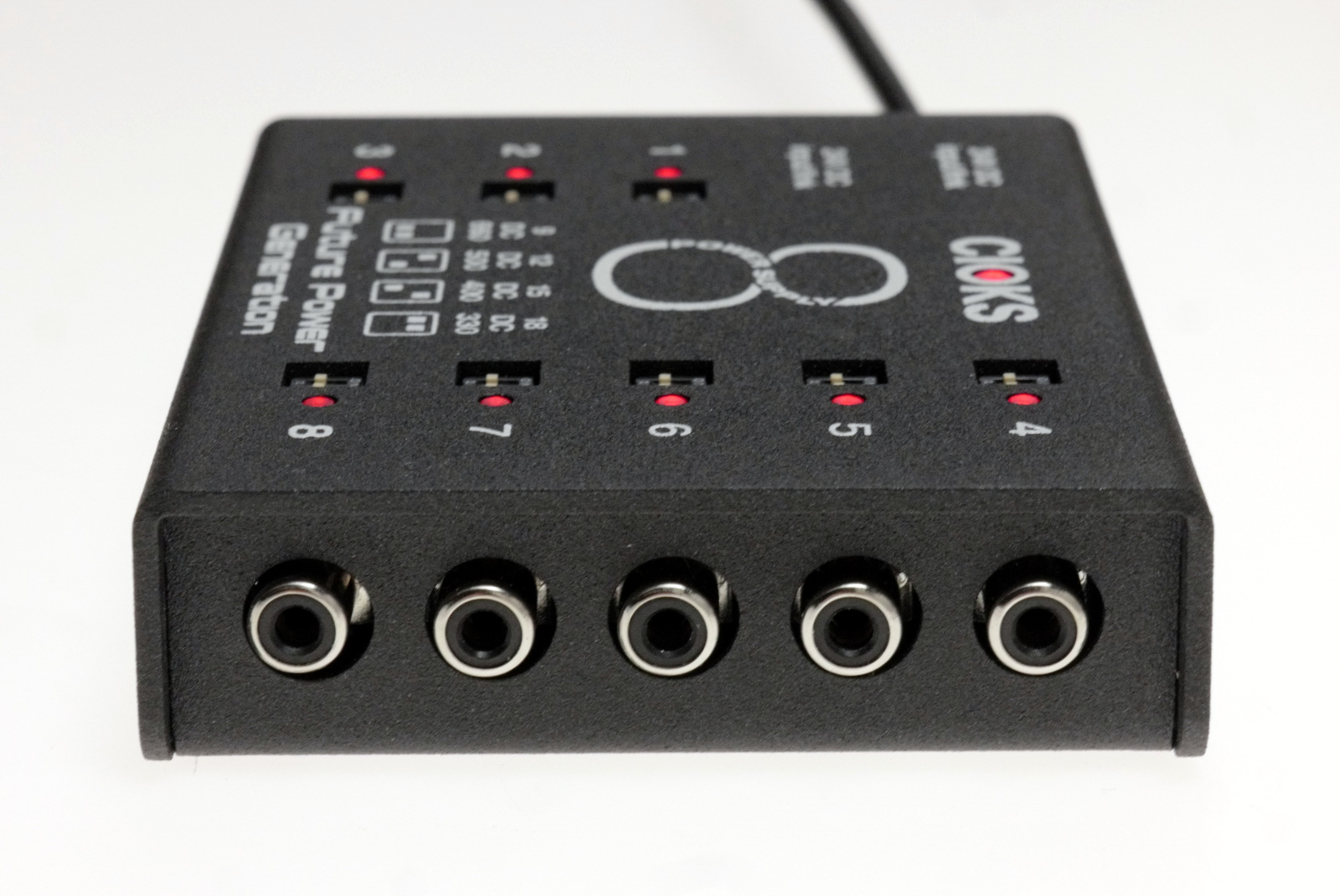 CIOKS 8 Expander er Cioks sin største switch-mode strømforsyningsutvider og er utviklet for gitarister og pedalbrettbrukere som trenger flere kraftige og isolerte utganger. Den er primært designet som en utvidelse til Cioks DC7, og gir en sømløs måte å skalere opp et eksisterende strømoppsett uten å gå på kompromiss med støynivå eller fleksibilitet.