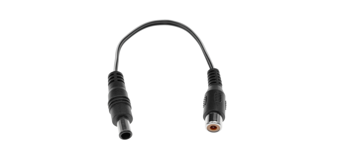 Kabelen har en EIAJ-kontakt i den ene enden, som kobles direkte til 24 V Aux-utgangen på DC7. I den andre enden sitter en RCA-kontakt som kan kombineres med valgfri CIOKS Flex-kabel, slik at riktig plugg og kabellengde kan velges til den aktuelle pedalen.