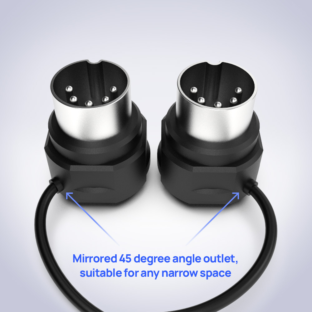 Med en unik 45° rotert design gir de fleksible tilkoblingsmuligheter og sikrer kompatibilitet med trange områder og sideplasserte jacks.