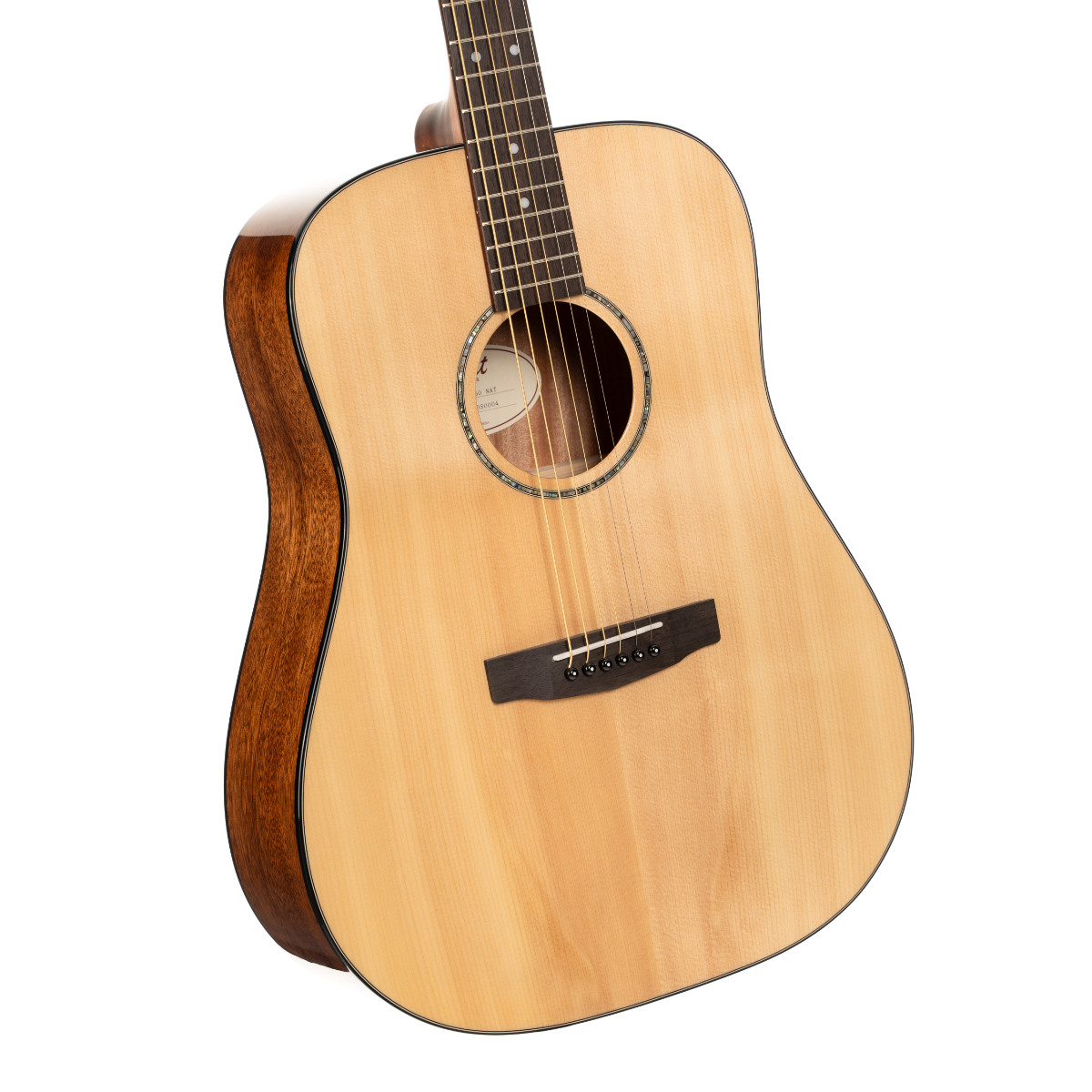 Cort Earth 60 N er en akustisk dreadnought-gitar laget som en hyllest til klassiske modeller, med tradisjonelle materialer og moderne konstruksjon til en svært god pris. Den solide gran-toppen gir klar, detaljert og responsiv tone, mens Advanced X-Bracing sikrer stabilitet og rik klang. Bunn og sider i mahogni tilfører varme og dybde, noe som gjør modellen like velegnet til komp som til mer delikat fingerspill.
