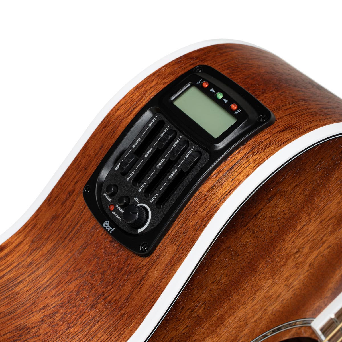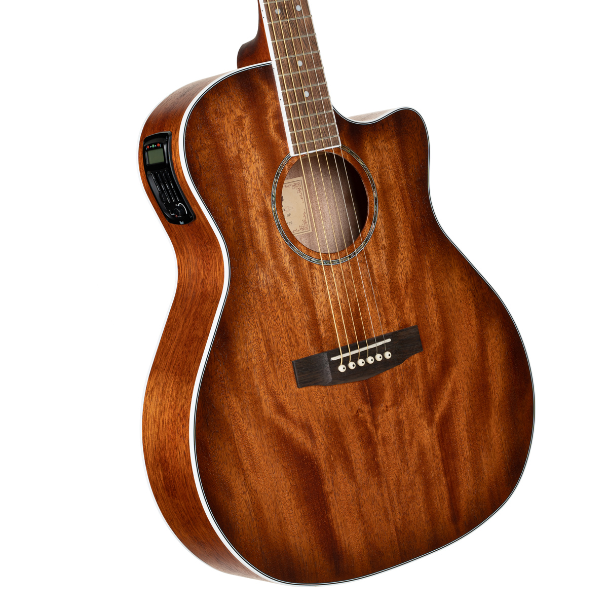 The new GA-MEDX M OP is an all-mahogany model that joins the GA Series for players who love mahogany and its distinctive look and character in the Grand Auditorium body and which is more affordable and delivers outstanding performance for its price. Finish: Mahogany CONSTRUCTION Dovetail Neck Joint CUTAWAY Venetian BODY Grand Auditorium NUT WIDTH 1 3/4 "(45MM) TOP Mahogany BACK & SIDES Mahogany NECK Mahogany FRETBOARD Laurel or Merbau FRETS 20 SCALE 25.5"(648MM) TUNERS Die-Cast BRIDGE Laurel or Merbau ELECTRONICS Cort® CE306T BRACING Advanced X-Bracin