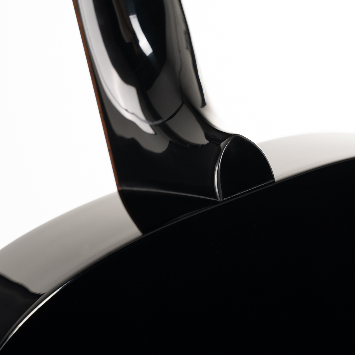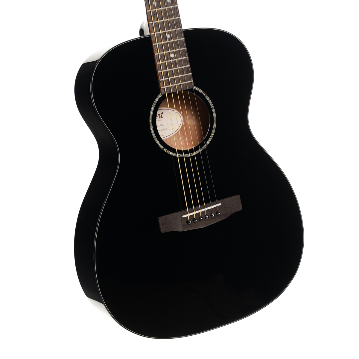 Cort L 60 CE BK kombinerer klassisk Orchestra Model-kroppsform med moderne konstruksjon og elektronikk, og er utviklet for gitarister som ønsker tydelig klang og god spillbarhet i et allsidig format. Den venetianske cutaway-utformingen gir enkel tilgang til de øvre båndene, samtidig som OM-kroppen bevarer balansert respons og klar definisjon.