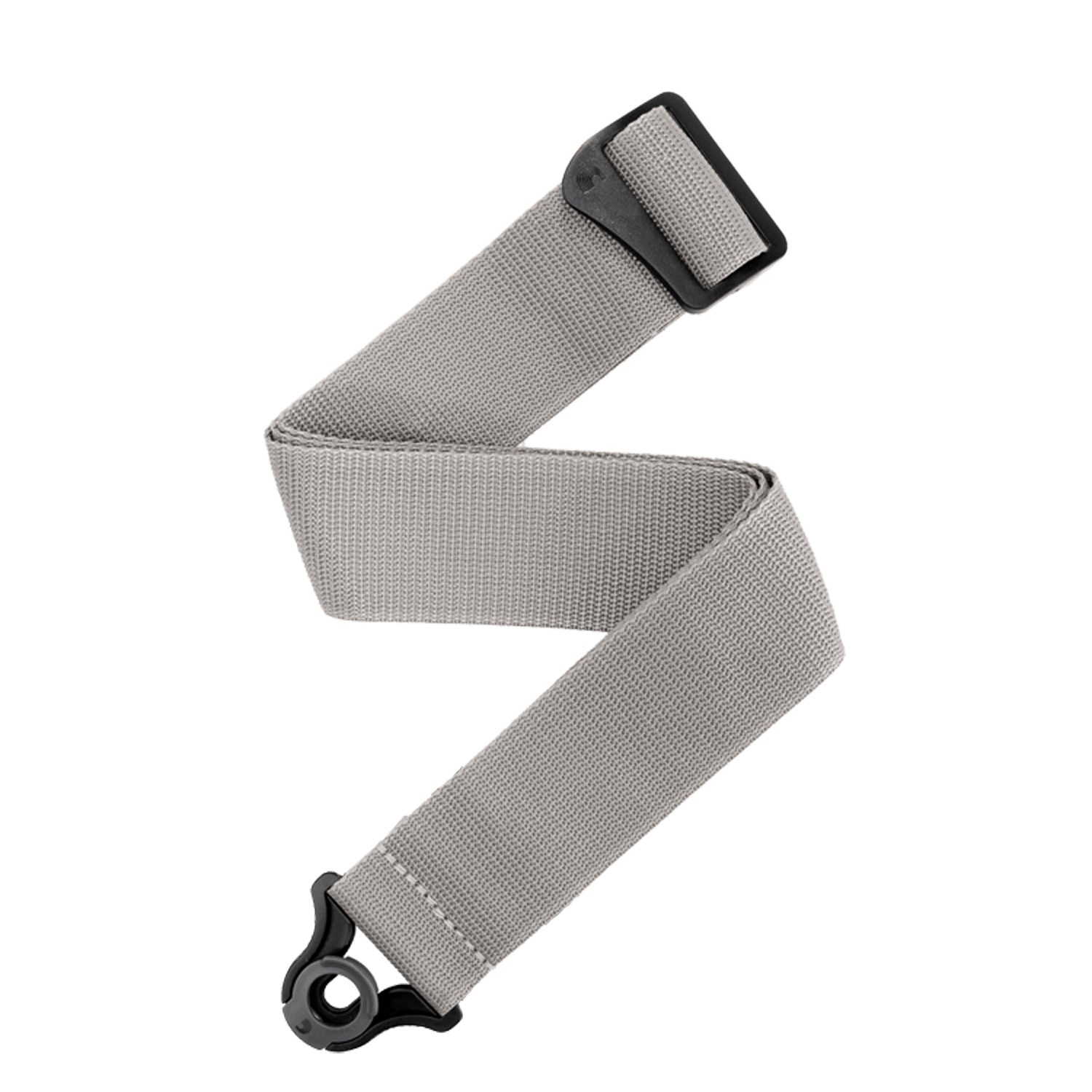 PWSAL405. Auto Lock Strap, 50mm Polypropylene, Silver. D'Addario Auto Lock gitarreim er det enkleste integrerte låsesystemet for deg og din aktive musisering. Bare skyv enden av gitarreimen over endeknotten på gitaren din, så låses den - den grå låsen er fjærbelastet og klemmer seg fast automatisk.Hvis du vil låse opp, bare trykk på låsen, skyv den til side og gitarreimen er koblet fra. Passer de fleste endeknotter på markedet. D'Addario Auto Lock Strap er designet i samarbeid med Ned Steinberger. Polypropylen design. • Enkelt, integrert låsesystem. • Polypropylen design. • Bredde 50mm • Justerbar lengde fra 89cm til 151cm. • Passer de fleste endeknotter på markedet. • Ned Steinberger design.