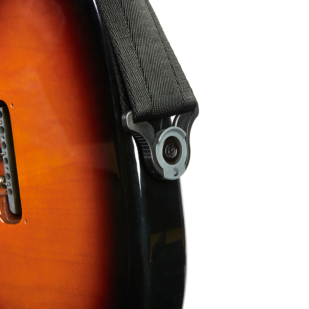 50BAL11. Auto Lock Strap. Blood Red. D'Addario Auto Lock gitarreim er det enkleste integrerte låsesystemet for deg og din aktive musisering. Bare skyv enden av gitarreimen over endeknotten på gitaren din, så låses den - den grå låsen er fjærbelastet og klemmer seg fast automatisk.Hvis du vil låse opp, bare trykk på låsen, skyv den til side og gitarreimen er koblet fra. Passer de fleste endeknotter på markedet. D'Addario Auto Lock Strap er designet i samarbeid med Ned Steinberger. • Enkelt, integrert låsesystem. • Vevd av mykt og behagelig nylonmateriale. • Bredde 50mm • Justerbar lengde fra 77cm til 149cm. • Passer de fleste endeknotter på markedet. • Ned Steinberger design.