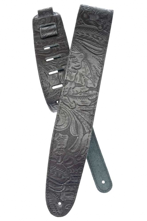 D'Addario Deluxe Leather Guitar Strap, Embossed, Black