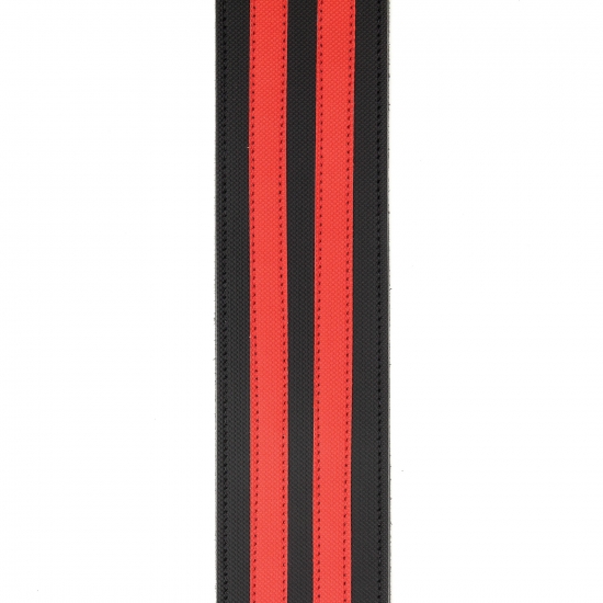 D'Addario Deluxe Leather Guitar Strap,Racing Stripes. Black with Red Stripes