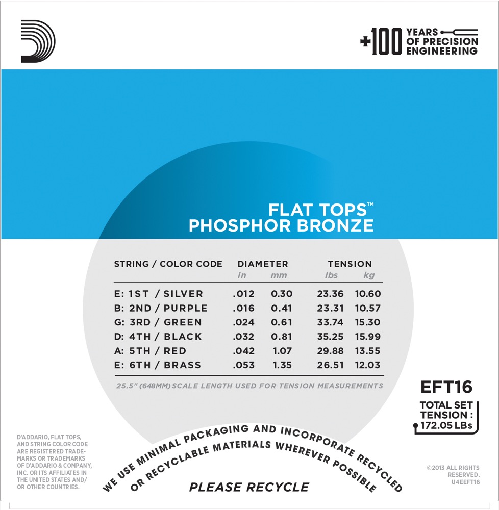 D'Addario EFT16 Flat Tops Phosphor Bronze Acoustic Guitar Strings, Light, 12-53