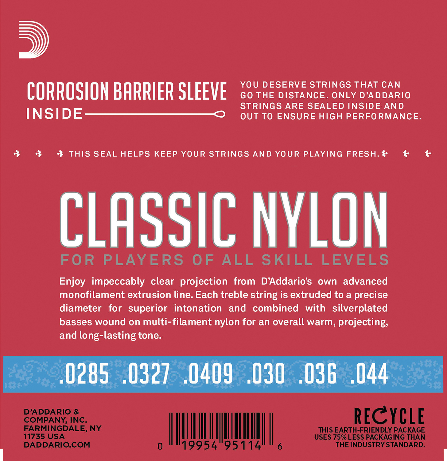 D'Addario EJ27H Student Nylon Classical Guitar Strings, Hard Tension