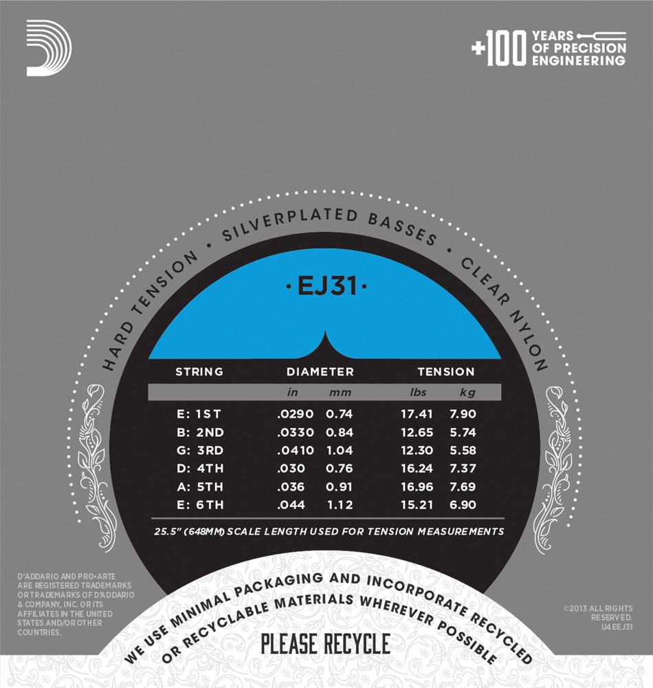 EJ31 Hard Silver/Clear 029 033 041 030w 036w 044w DAddario Classic serien er kjent for sin varme klang. Hver streng er datakontrollert for perfekt rundhet og dimensjon, og som garanterer perfekt intonasjon på alle trinn.