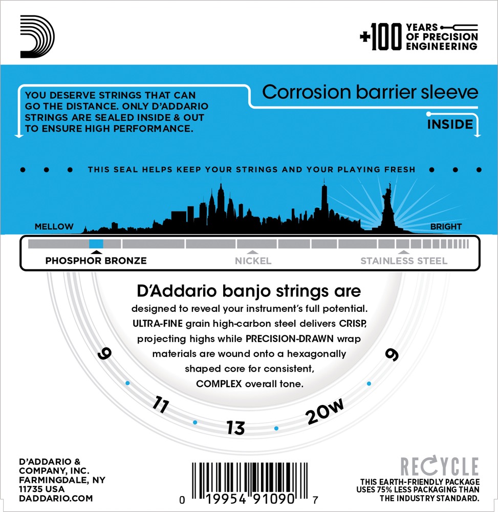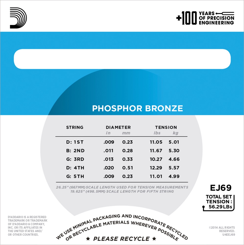 D'Addario EJ69 5-String Banjo Strings, Phosphor Bronze, Light, 9-20