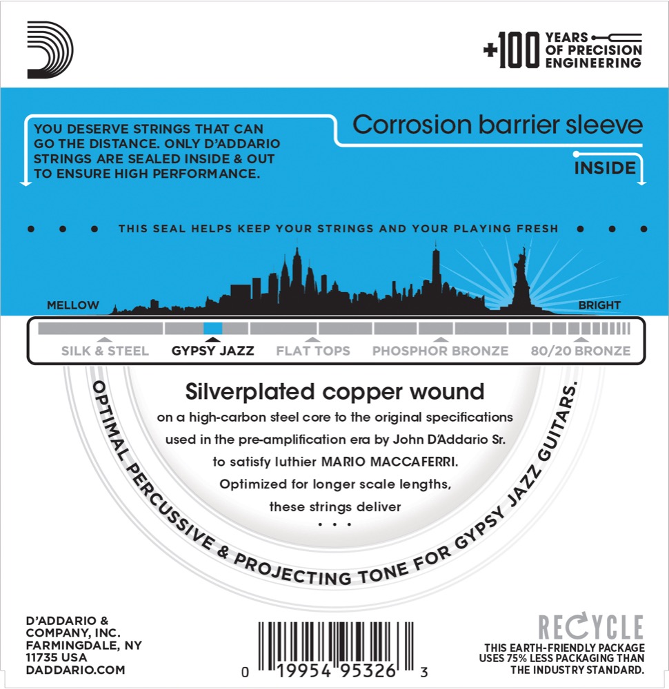 D'Addario EJ83L Gypsy Jazz Acoustic Guitar Strings, Ball End, Light, 10-44