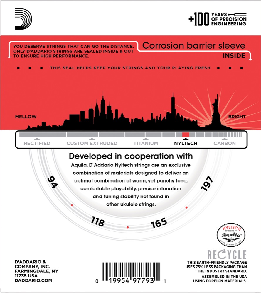 D'Addario EJ88UB Nyltech Ukulele Strings, Bass