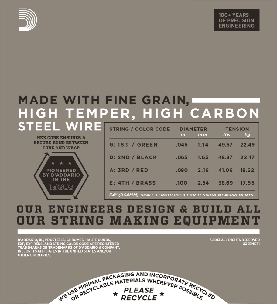 D'Addario ENR71 Half Round Bass Guitar Strings, Regular Light, 45-100, Long Scale