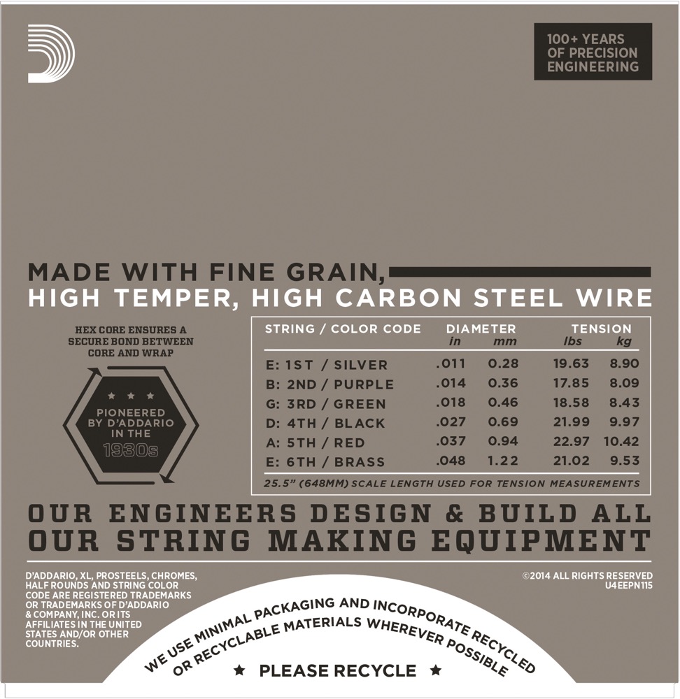 D'Addario EPN115 Pure Nickel Electric Guitar Strings, Blues/Jazz Rock, 11-48