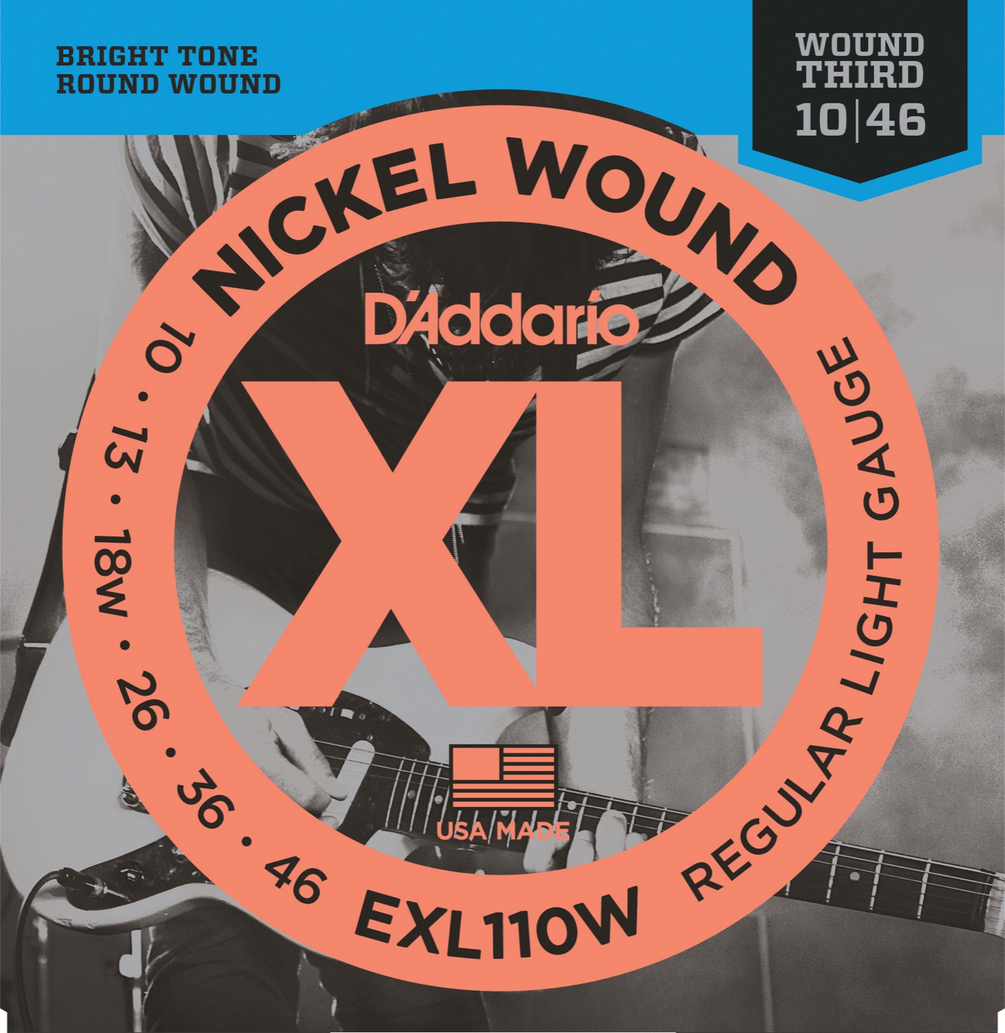 D'Addario EXL110W Nickel Wound Electric Guitar Strings, Regular Light, Wound 3rd, 10-46
