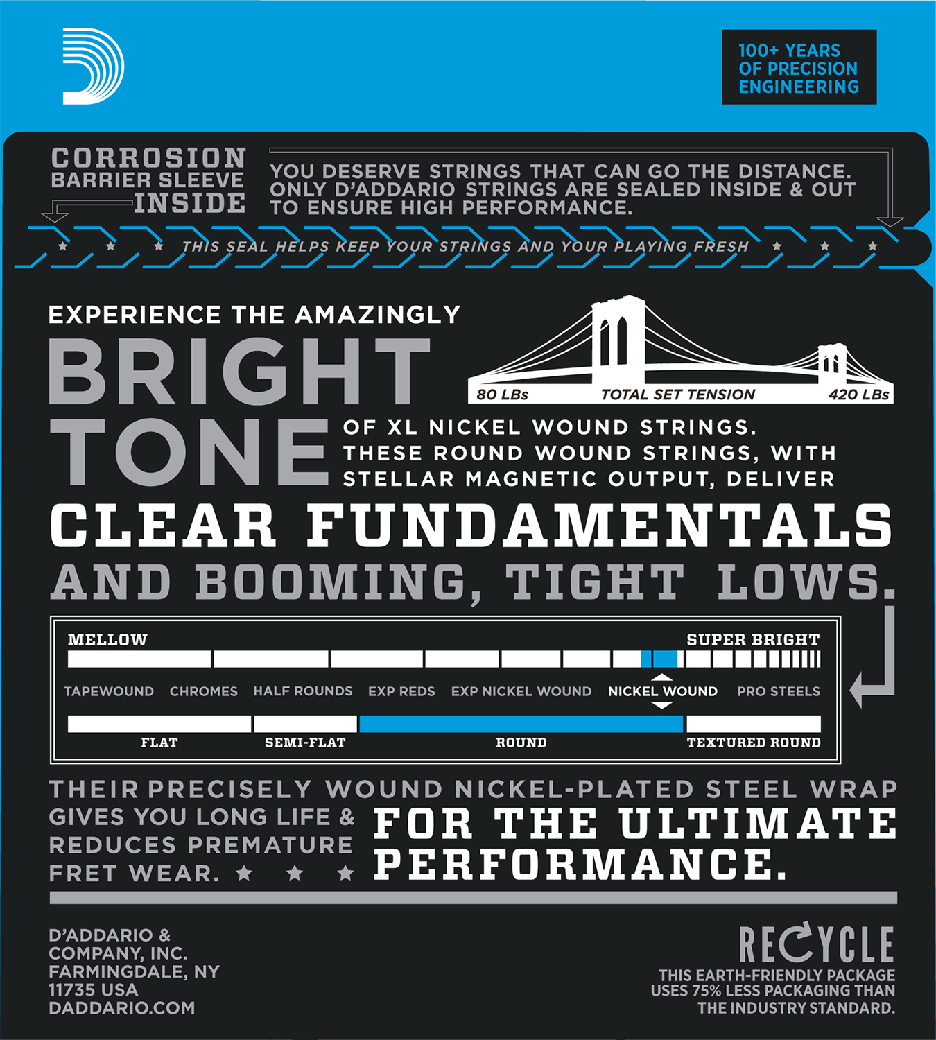 D'Addario EXL160M Nickel Wound Bass Guitar Strings, Medium, 50-105, Medium Scale