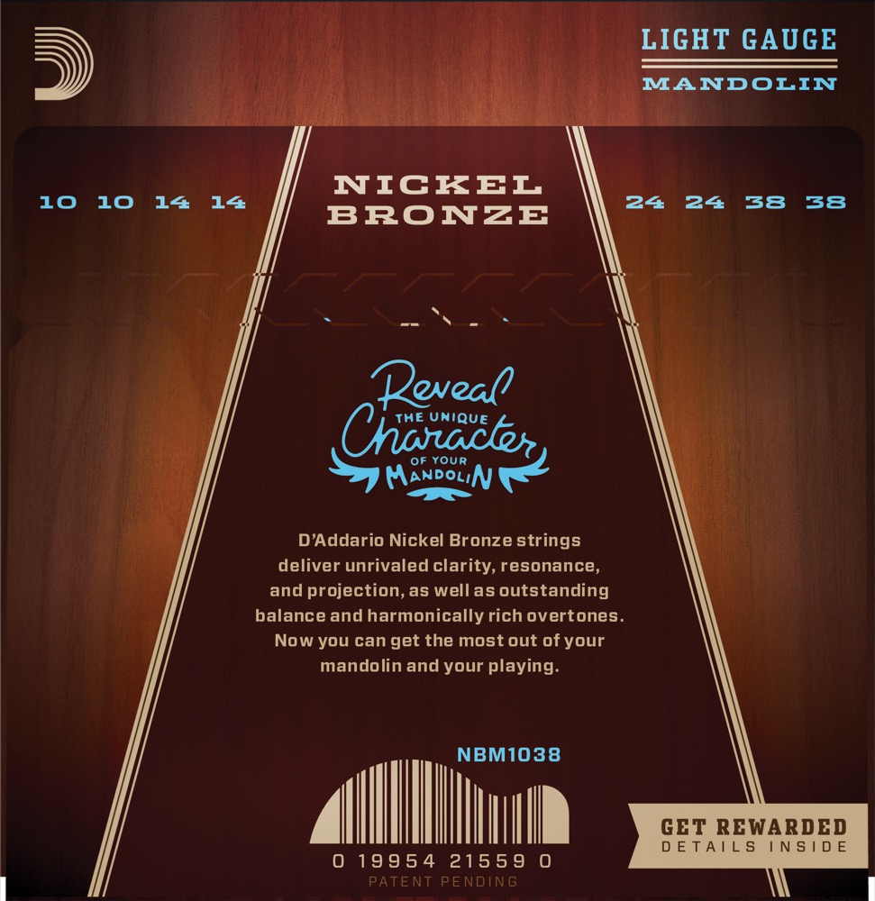 D'Addario NBM1038 Nickel Bronze Mandolin Strings, Light, 10-38