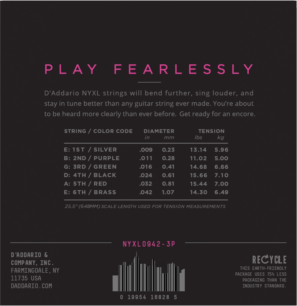 D'Addario NYXL0942-3P Nickel Wound Electric Guitar Strings, Super Light, 9-42, 3 Sets
