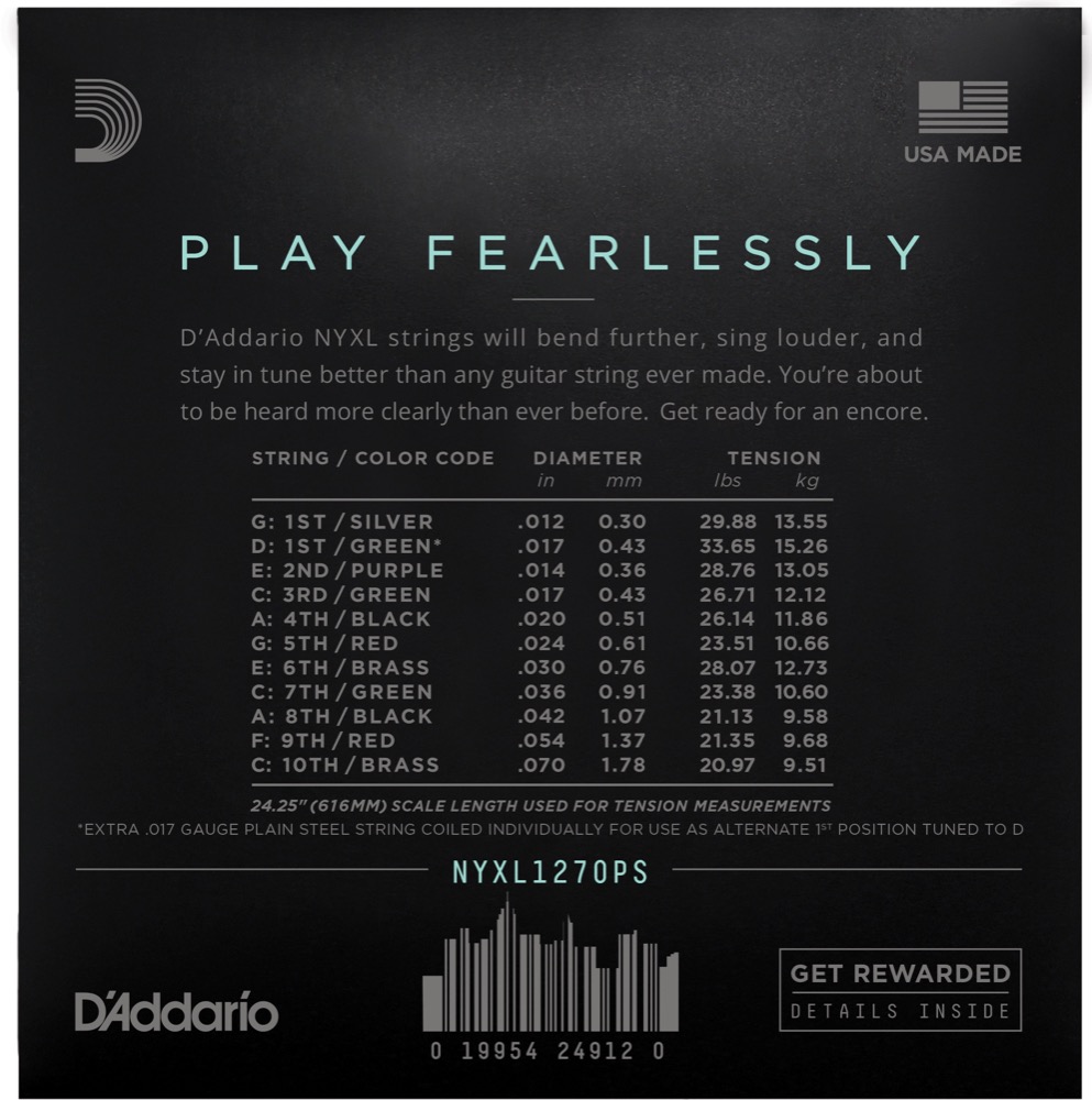 D'Addario NYXL1270PS Nickel Wound C6 Pedal Steel Guitar Strings, Regular, 12-70