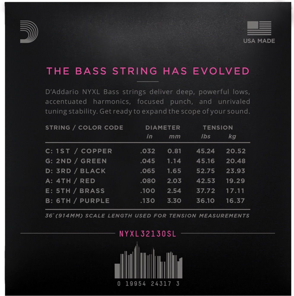 D'Addario NYXL32130SL Nickel Wound Bass Guitar Strings, Regular Light 6-String, 32-130, Super Long Scale