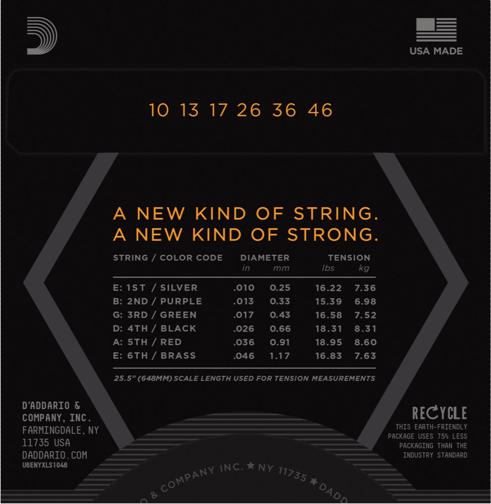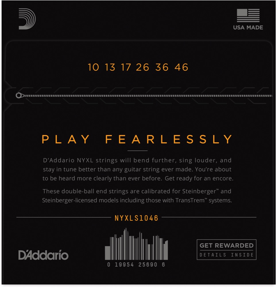 D'Addario NYXLS1046 Nickel Wound Electric Guitar Strings, Regular Light, Double Ball End, 10-46
