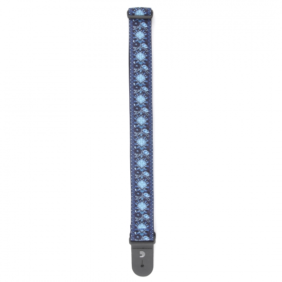 T20W1418 - Woven - Monterey 2 Blue. D'Addarios Woven gitarreimer er designet for utøvere i alle sjangere og tilbyr design som vil tilfredsstille selv den mest kresne spilleren. Fra ikoniske temaer til unike design og kunst, Disse slitesterke gitarreimene er et fantastisk supplement til alle gitarer. • Sterke og sikre skinnendestykker. • Gir maksimal komfort i stående situasjoner. • Bredde 50mm. • Justerbar lengde fra 89 cm til 151 cm.