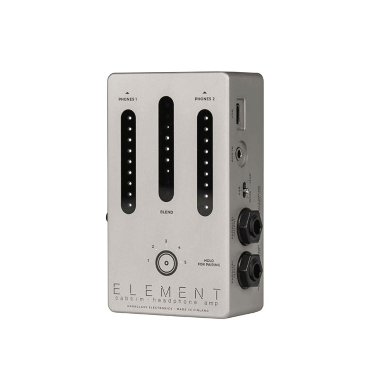 Darkglass Element Headphone Amp & Cabinet Simulator er en innovativ hodetelefonforsterker og kabinettsimulator utviklet for musikere som ønsker å øve stille med høy kvalitet på lydgjengivelsen. Enheten kombinerer minimalistisk design med avansert teknologi, inspirert av touch-sensorene brukt i Hyper Luminal Compressor.