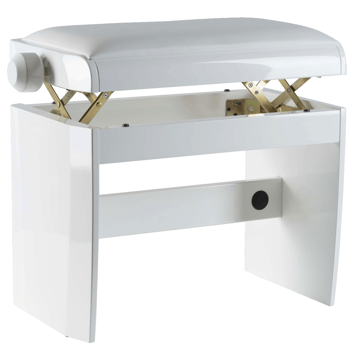 Pianobenk i Italiensk design. Polert hvit, justerbar