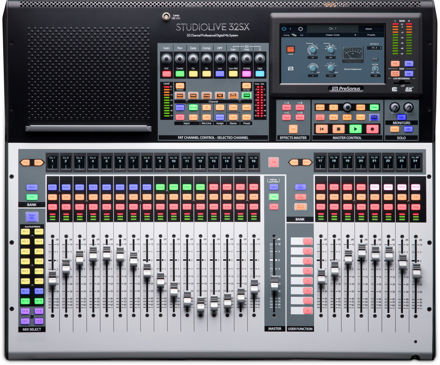 4U rackmikser med 48 kanaler, 96kHz FPGA prosessering og 12 bus + LR SLink-port og 64x64 I/O-port for nettverk (Dante, Waves, MADI, SLink) SQ-Drive 32x32 96kHz lydkort via USB