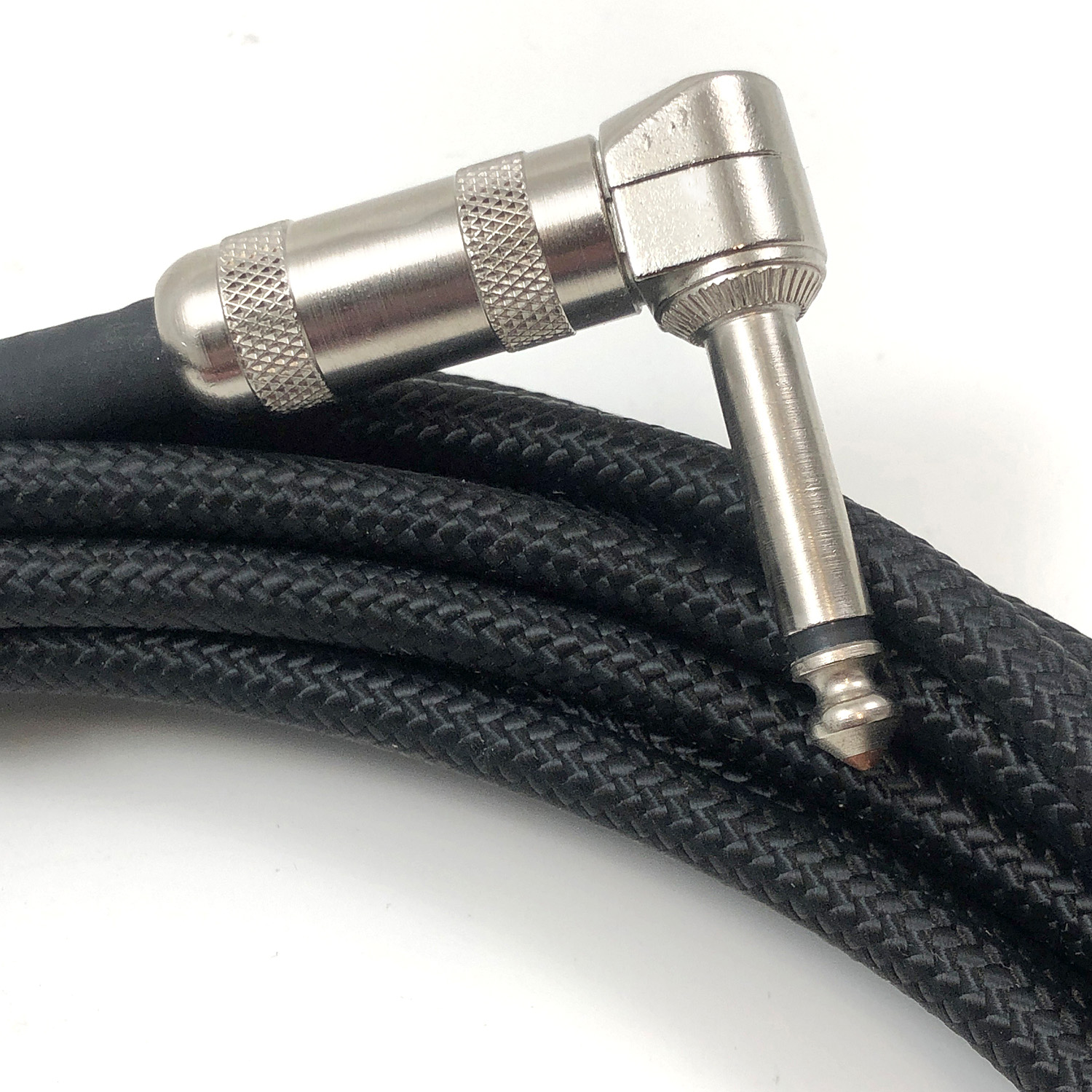 EP1710SRBK Instrument Cable. 3m. Made in USA. DiMarzio® Guitar & Instrument Cables are unsurpassed for connecting guitars, basses and keyboards to amps. Exceptionally crisp, clear, quiet and durable, they outperform cables costing much more. They've been called the new industry standard, and have successfully passed Guitar Player magazine's chop and jump rope tests as well as many other torture tests. Custom designed low-capacitance American-made copper cable ensures low stage noise and guarantees consistent sound and improved high frequency response. DiMarzio® Instrument Cables are encased in a durable nylon braided jacket which is designed to lie flat, decrease tangling and protect the cable. DiMarzio® Instrument Cables come in 6-foot, 10-foot, 15-foot, 18-foot and 21-foot lengths. Right angle and silent ends are available. All DiMarzio® cables are hand made in our NYC factory. Spec. - Wire Gauge: AWG 20 (0.519 mm2) - Diameter: 0.237 in. (6.02 mm) - Insulation: Polyethylene inner with PVC outer - Capacitance: 33.27 pF/ft (109pF/M) - Shield & Material: Copper Braid + Conductive PVC 98% - Jacket & Material: PVC + Nylon Overbraid - Resistance: 8.8 ohm/1,000 ft (29 ohm/KM) - Inductance: 0.07 µH/ft (0.2 µH/M) - Termination Method: Silver Solder