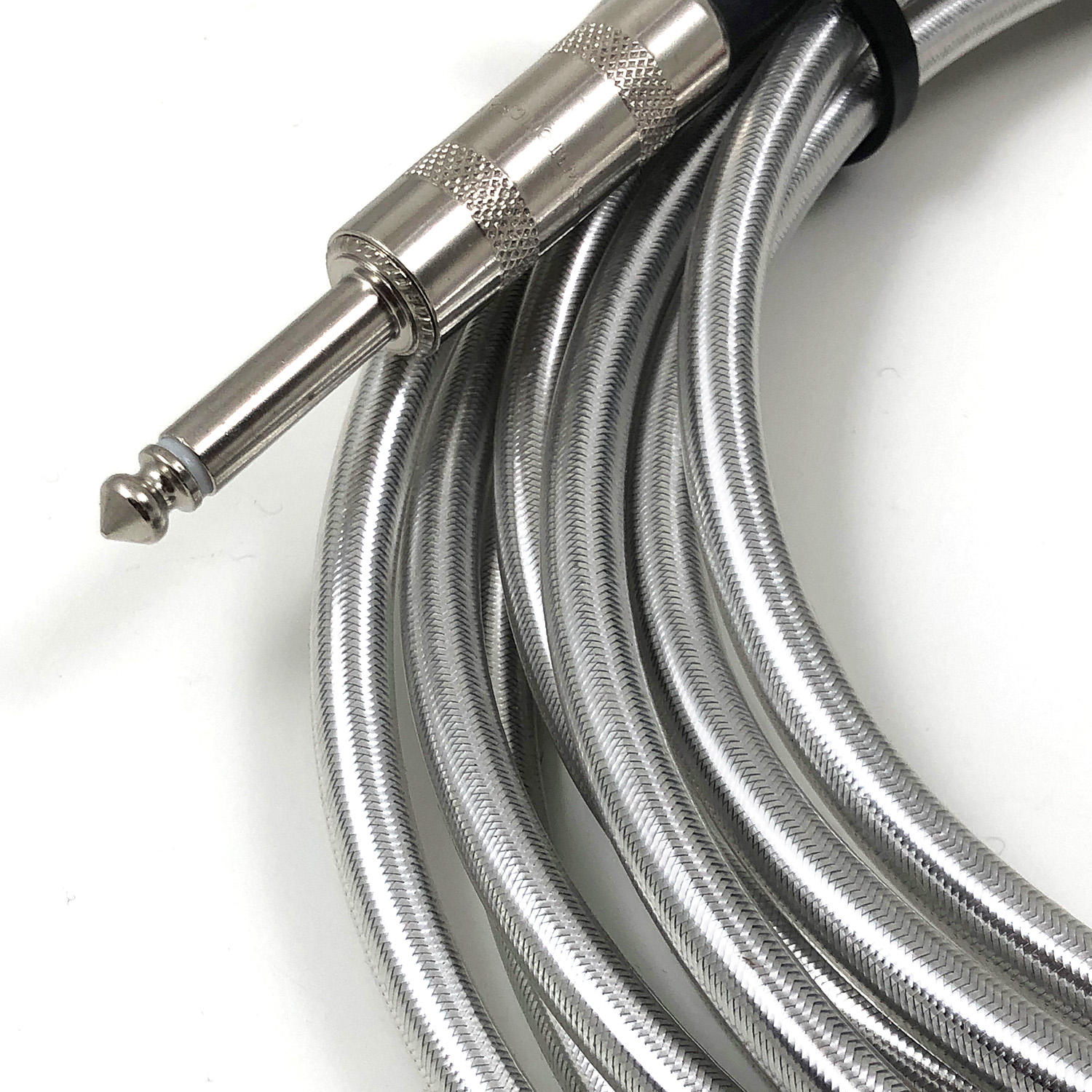 EP1715SSSM Metallic Instrument Cable. 4.5m. Made in USA. DiMarzio® Guitar & Instrument Cables are unsurpassed for connecting guitars, basses and keyboards to amps. Exceptionally crisp, clear, quiet and durable, they outperform cables costing much more. They've been called the new industry standard, and have successfully passed Guitar Player magazine's chop and jump rope tests as well as many other torture tests. Custom designed low-capacitance American-made copper cable ensures low stage noise and guarantees consistent sound and improved high frequency response. DiMarzio® Instrument Cables are encased in a durable nylon braided jacket which is designed to lie flat, decrease tangling and protect the cable. DiMarzio® Instrument Cables come in 6-foot, 10-foot, 15-foot, 18-foot and 21-foot lengths. Right angle and silent ends are available. All DiMarzio® cables are hand made in our NYC factory. Spec Wire Gauge: AWG 20 (0.519 mm2) Diameter: 0.237 in. (6.02 mm) Insulation: Polyethylene inner with PVC outer Capacitance: 33.27 pF/ft (109pF/M) Shield & Material: Copper Braid + Conductive PVC 98% Jacket & Material: PVC + Metallized Film Resistance: 8.8 ohm/1,000 ft (29 ohm/KM) Inductance: 0.07 µH/ft (0.2 µH/M) Termination Method: Silver Solder