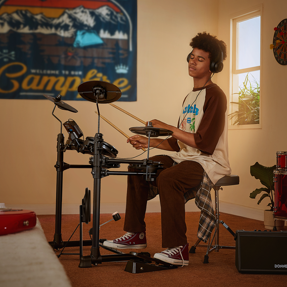 Donner DED-80 er perfekt for de som bor i leilighet eller har begrenset plass. Trommestativet er stabilt og kan foldes sammen, noe som gjør det enkelt å oppbevare og ta fram etter behov. Settet er også lett å transportere hvis du skal øve et annet sted. Muligheten til å bruke hodetelefoner betyr at du kan øve uten å forstyrre andre, noe som gjør settet ideelt for stille øving.