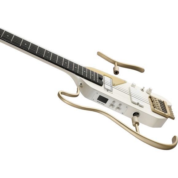 White-Luxe-utgaven har en elegant, lys finish med glatt overflate og eksklusive detaljer i satin gull-hardware. Det strømlinjeformede og hodeløse designet gir god ergonomi og gjør gitaren komfortabel å spille på både i korte økter og lengre øvinger, samtidig som formatet er lett å transportere.