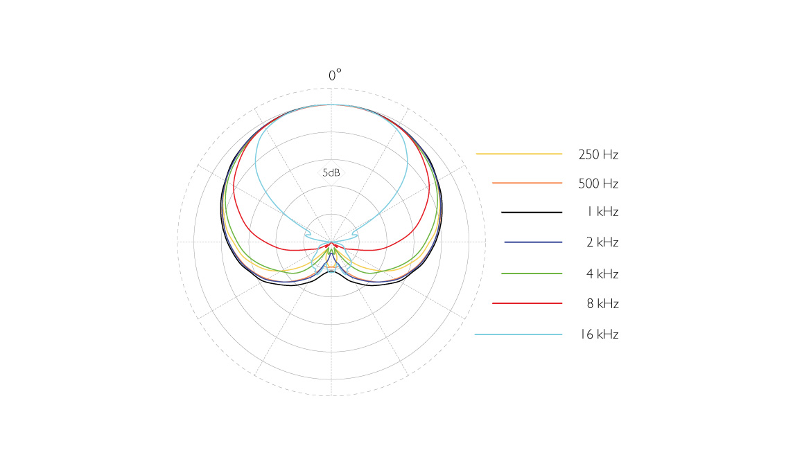 - Frekvensrespons: 20 Hz – 20 kHz (±2 dB: 50 Hz – 17 kHz med 3 dB løft ved 12 kHz)