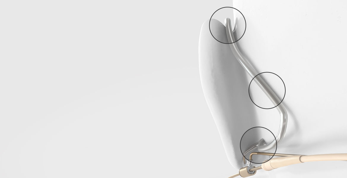 Bommen kan enkelt tilpasses for optimal plassering ved munnviken. Den kan forlenges eller forkortes og vippes opp og ned ved et fast punkt under øret. En anti-rotasjonsmekanisme forhindrer at bommen vrir seg, og et skyvelåssystem sikrer stabil plassering. Bomarmen kan også løsnes og flyttes fra høyre til venstre side av rammen.