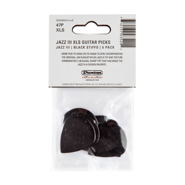 Disse Dunlop Jazz III XL-plekterne har en spiss form og 1,38 mm tykkelse.