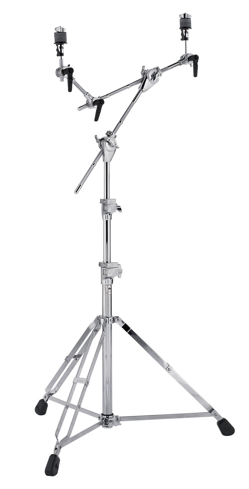For flexible construction of several instruments on one stand;Cymbal seat adjustment, boom extension and cymbal arm;Infinitely adjustable inclination;Techlock drum key locking mechanism;Infinitely variable felt spacing adjuster;Double extendable;Comfort memory clamps;Double-braced mega tripod base;