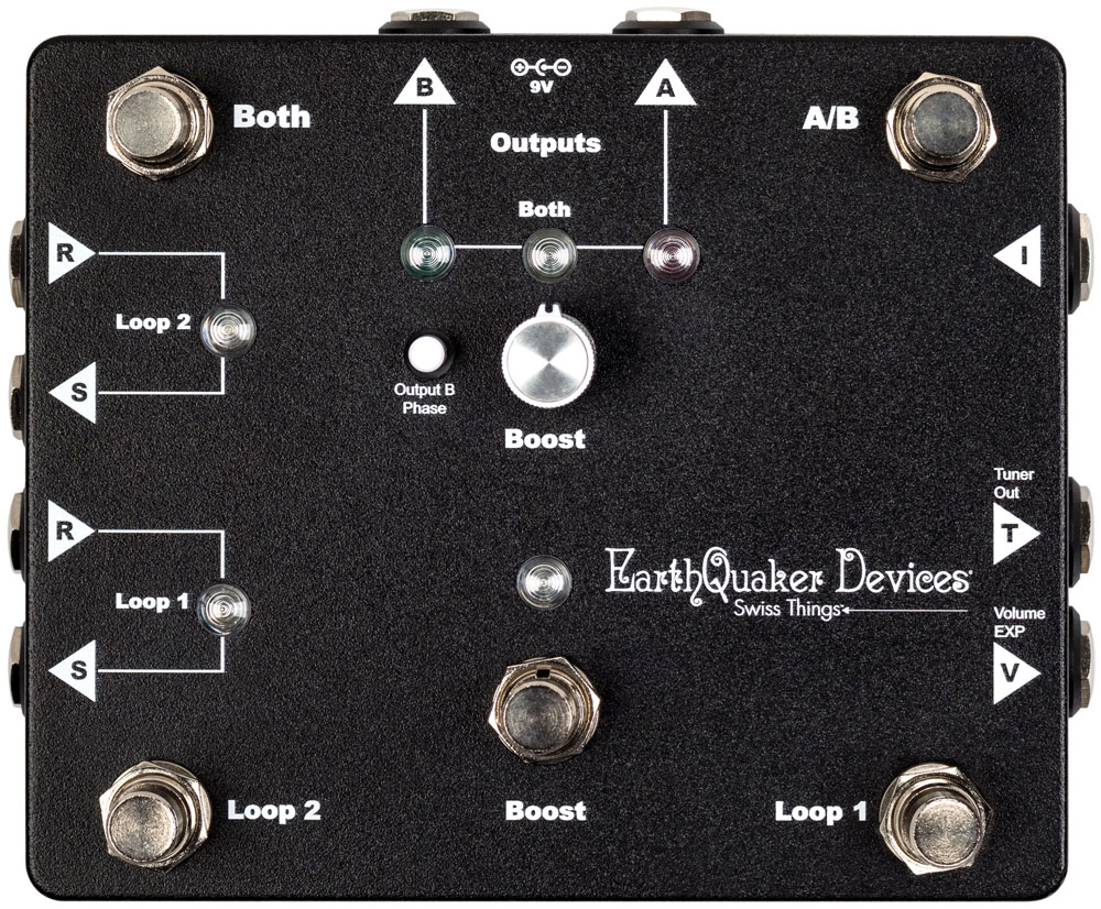 Swiss Things har to true bypass effektsløyfer med EarthQuakers unike Flexi-Switch-teknologi som lar deg bruke både latch- og momentærbryting på alle pedaler. Loop 1 er ubuffret, perfekt for fuzz, overdrive og boost-pedaler som krever lav inngangsimpedans og direkte kontakt med pickups. Loop 2 er buffret og optimalisert for tidsbaserte og modulasjonseffekter.