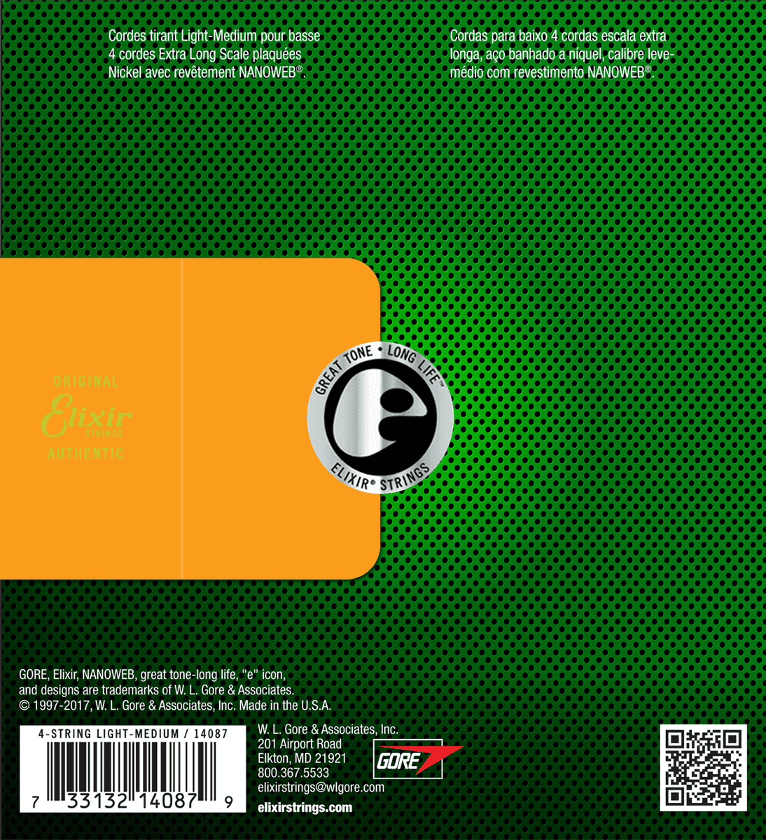 Elixir®Nickel Plated Steel Bass Strings med NANOWEB®Coating gir en fyldig og rund tone, med større klarhet og mer presence i mellomtone