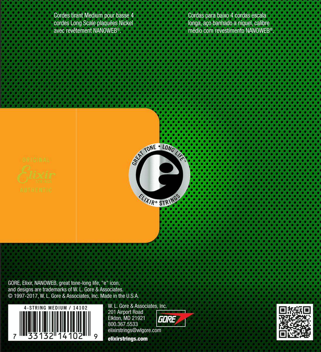 Elixir®Nickel Plated Steel Bass Strings with a NANOWEB®Coating deliver a rich, rounded tone with greater clarity and heavier mid-range presence.