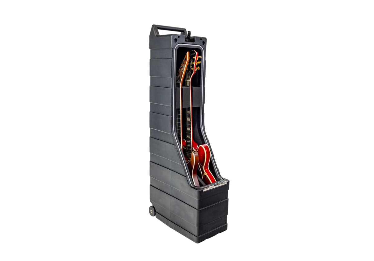Kofferten har et avtagbart lokk for enkel tilgang, Smooth Glide-hjul for komfortabel transport og en 304 rustfri stål-låsbar mekanisme for ekstra sikkerhet. Med plass til to store gitarer eller én akustisk, fungerer AMG-2XL som en pålitelig og slitesterk turnéløsning — både på scenen og under transport.