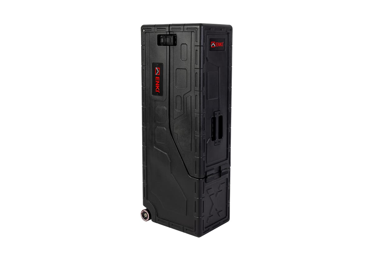 ENKI X-2 Electric Guitar Case er en robust og strømlinjeformet koffert utviklet for krevende turnébruk, med lett roto-støpt polyetylenskall og modulært innlegg som gir optimal beskyttelse av to elgitarer. Den er designet for maksimal slitestyrke, stabil trilling og rask tilgang på scenen.